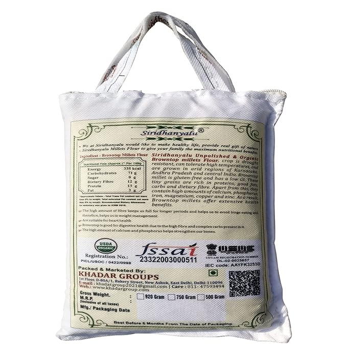 Browntop Millet Flour is a type of flour that is unpolished, organic, gluten-free, and perfect for people with diabetes or those looking to lose weight. This flour is made from the grains of the browntop millet plant, which is known for its high nutritional value and numerous health benefits. Because it is unpolished, it retains all its natural goodness and is rich in fiber, vitamins, and minerals. Browntop millet flour has a low glycemic index, making it an ideal choice for people with diabetes as it helps regulate blood sugar levels. Additionally, its high fiber content helps keep you feeling full for longer, making it an excellent choice for weight loss. Browntop millet flour is easily available online and can be used to make a variety of dishes such as bread, rotis, dosas, and pancakes, making it a versatile and healthy ingredient to include in your diet.