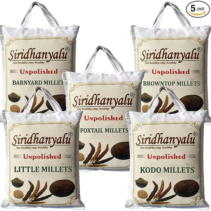 siridhanyalu Unpolished Millet Siridhanya 5 Types Of Organic Millets Rice Little Kodo Browntop Barnyard& ;Foxtail 250Gm Each-Punjabi (Gwt.1500 Gm.)