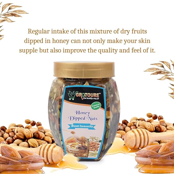 GROTOURE Honey Dipped dry fruits and nuts, Roasted and Crunchy with 100% Immunity & Energy Booster -900 Gm