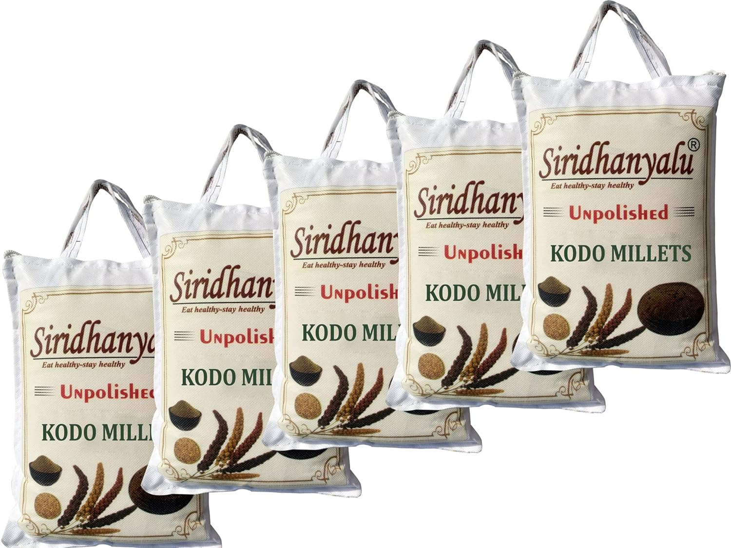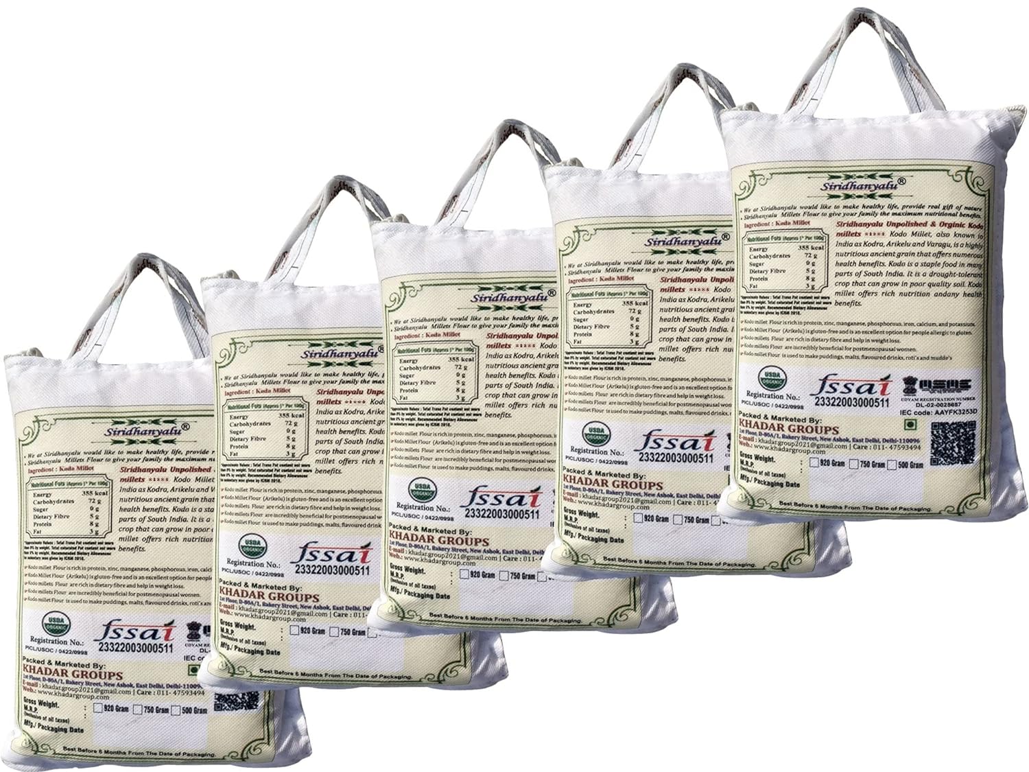 Siridhanya Unpolished and Organic Kodo Millets 920gm pack of 5, Gross wt 4600gm) Organically Grown from Karnataka